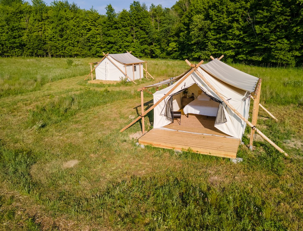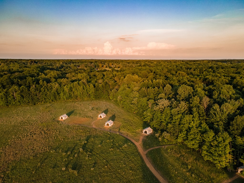 Looking for a unique place for a family reunion, company retreat, or bachelor/bachelorette party? Whatever your needs, look no further than Off Map, a luxury camping site in beautiful Southwest Michigan. We offer full site bookouts, meaning that your group will be the only guests on property. Relax, unplug, and recharge under starry night skies and the smells of s’mores and bonfire. Enjoy a BBQ dinner prepared by a private chef for one night and live campfire entertainment. Our team is here to help you plan every part of your event, making this a memorable and turnkey experience. Each of our tents is furnished with luxurious mattresses, high-quality linens, and charming decor. Our shared bathhouses provide cozy, clean places to shower each day, and our 5 en-suite tents provide guests with a private bathroom. In short, at Off Map, you can enjoy nature while feeling pampered. INCLUDES: - Two nights for up to 40 in luxury safari tents (20 total tents) - Complimentary coffee and a light breakfast - Live campfire entertainment - Private chef for one night (BBQ dinner) Off Map is located in Southwest Michigan, near some of the area's most popular coastal resort towns. Enjoy dining, shopping, and beaches all within a 10-minute drive. Not to mention wineries, breweries, hiking, boating, orchards, and more! Details: 2 nights / 20 bedrooms / Sleeps up to 40 Restrictions: Subject to availability. Off Map is open seasonally, May 1 - Oct 31 (weather dependent). Valid for Sunday - Wednesday check-ins only. Must book package within 12 months of purchase. Valid: Valid for Sunday - Wednesday checkins during camping season, typically May 1 - October 31